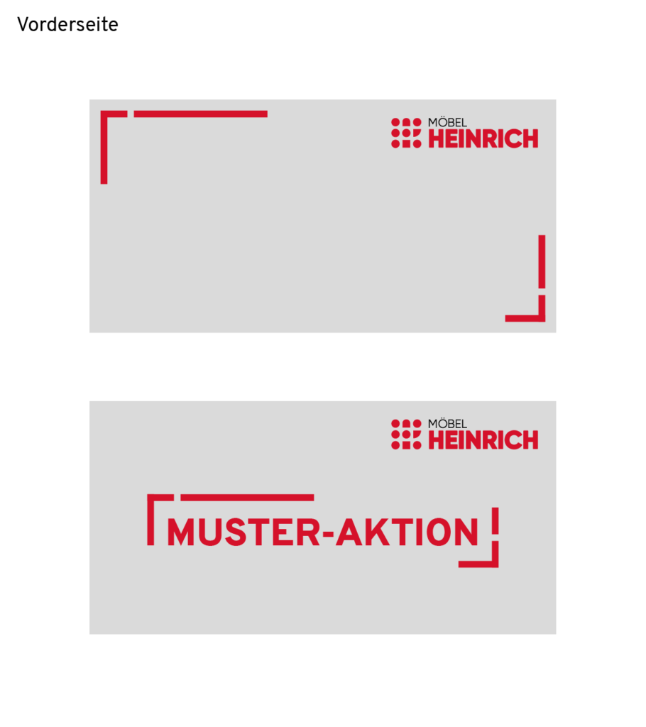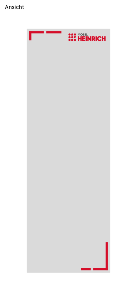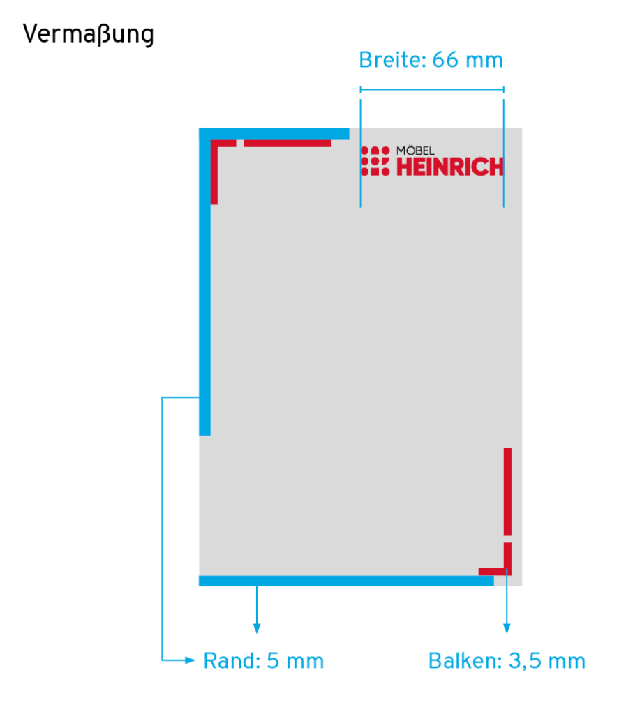 In den hier abgebildeten Beispielen sollen nur Rahmengestaltungen verdeutlicht werden. Wo steht das Logo, wie groß ist das Logo, wie dick sind die Rahmenelemente? Anhand der Beispiele lassen sich leicht Größen für weitere Formate ableiten. Die Maße dienen als Empfehlung. Je nach Botschaft, Aussage und Platzierung können natürlich andere Größenverhältnisse nötig oder besser geeignet sein.